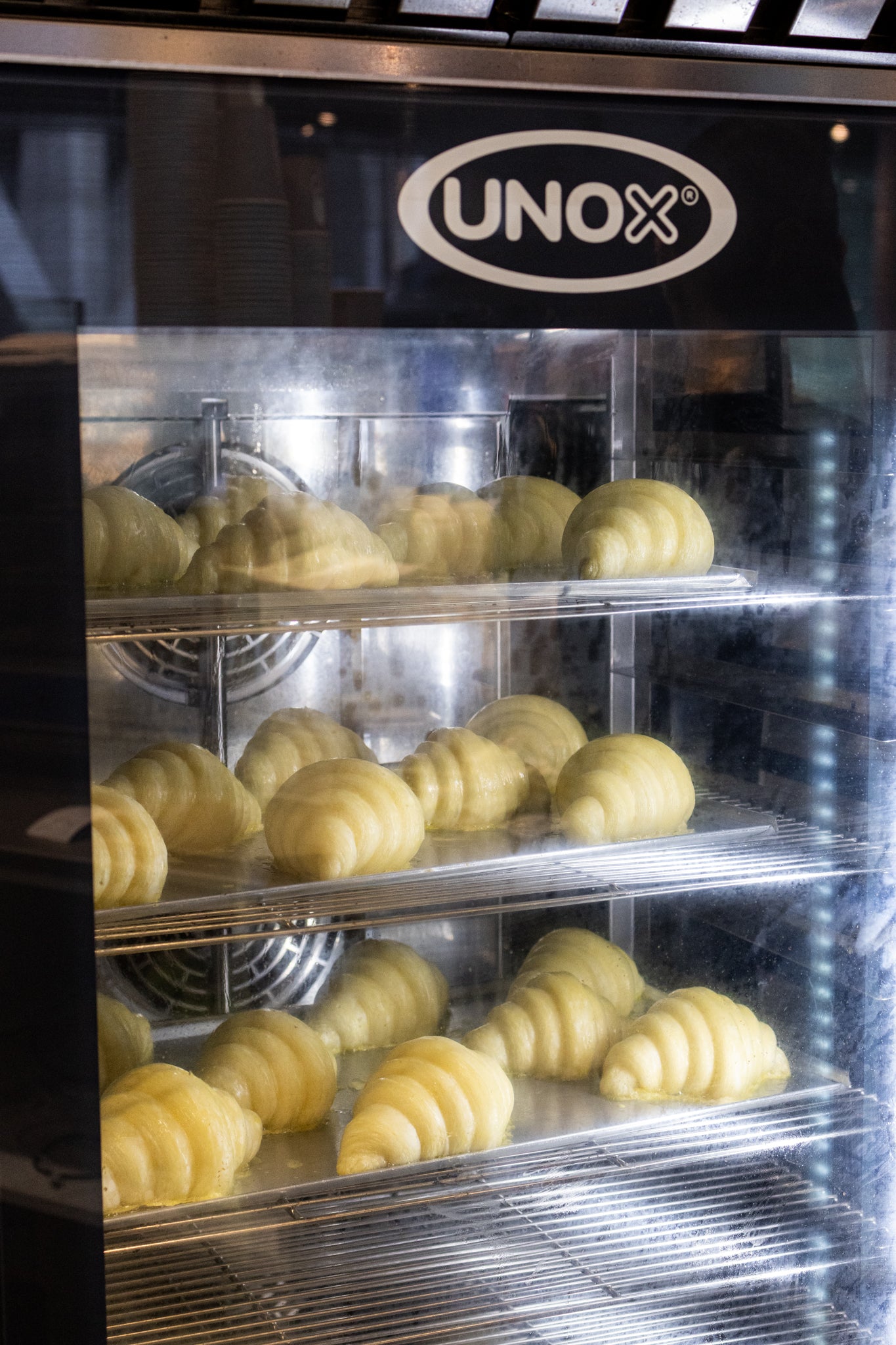 Traditional croissant - prepped from scratch, laminated, rolled, proved and baked in-store.